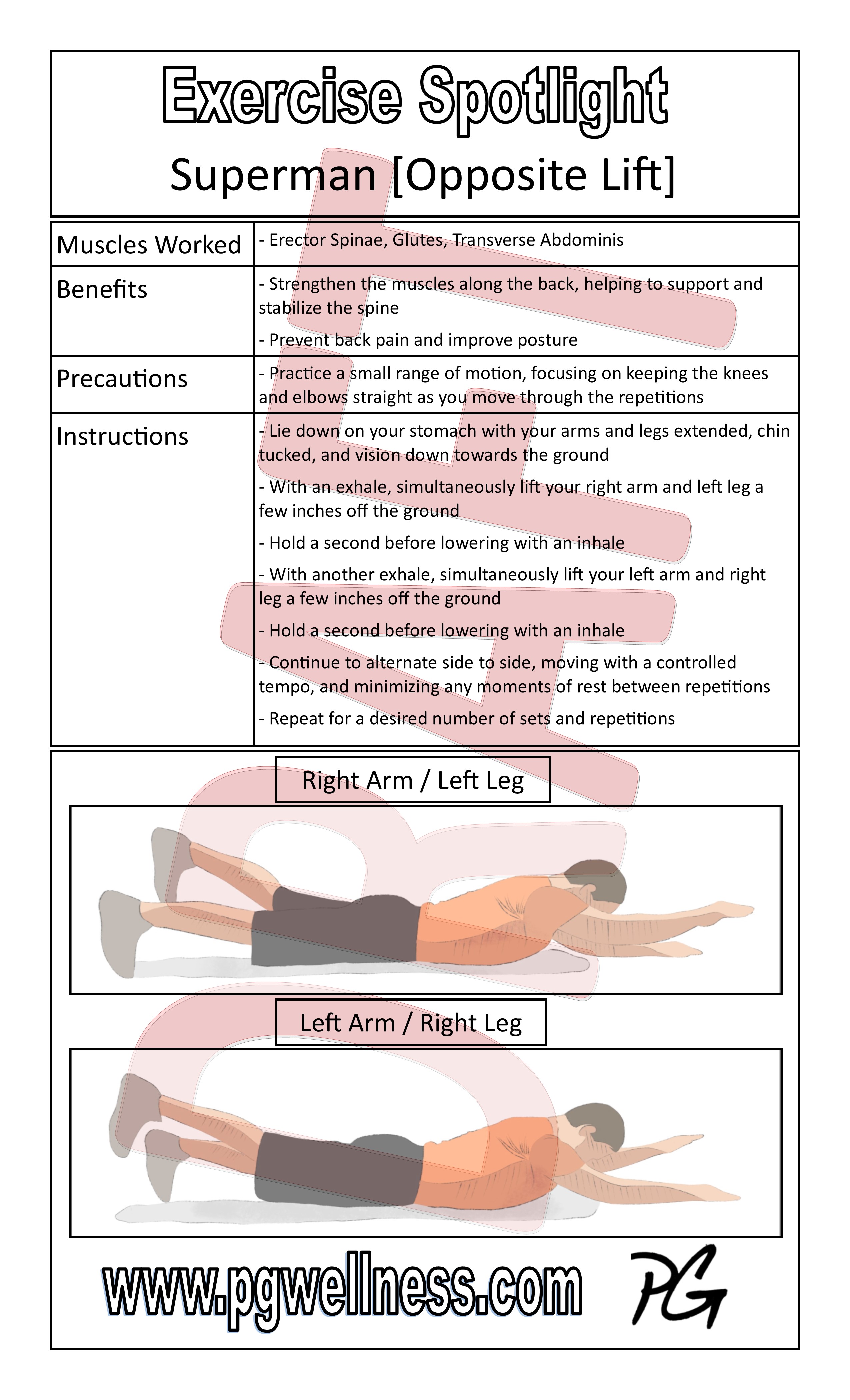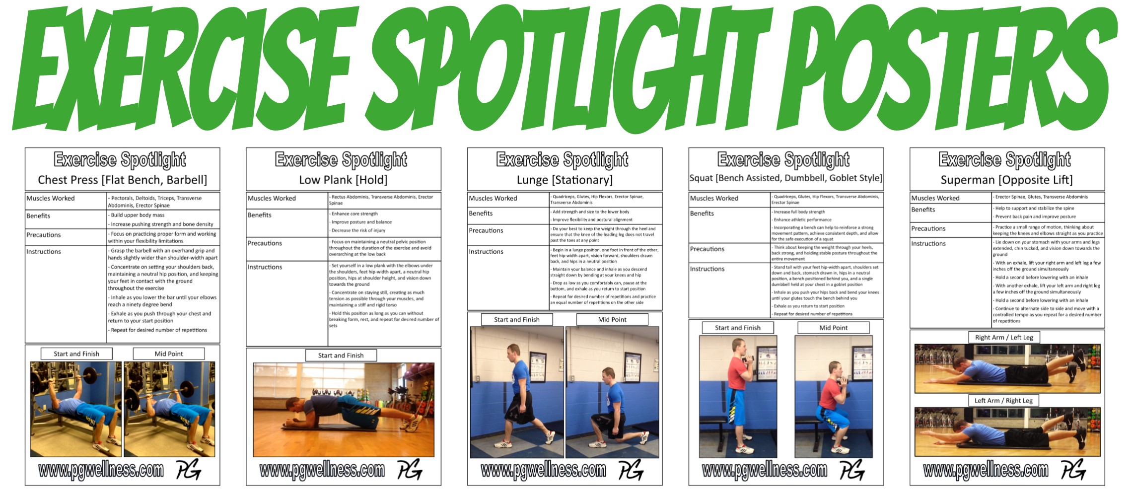 A big part of what I intend to do with PGWellness is educate and advise people on how to exercise safely and effectively, so I have created these teaching tools in the form of Exercise Spotlight Posters. My hope is that these posters will be received as study aids, providing you an opportunity to learn something new and explore alternative forms of exercise, ultimately picking and choosing what works best for you and your individual objectives.