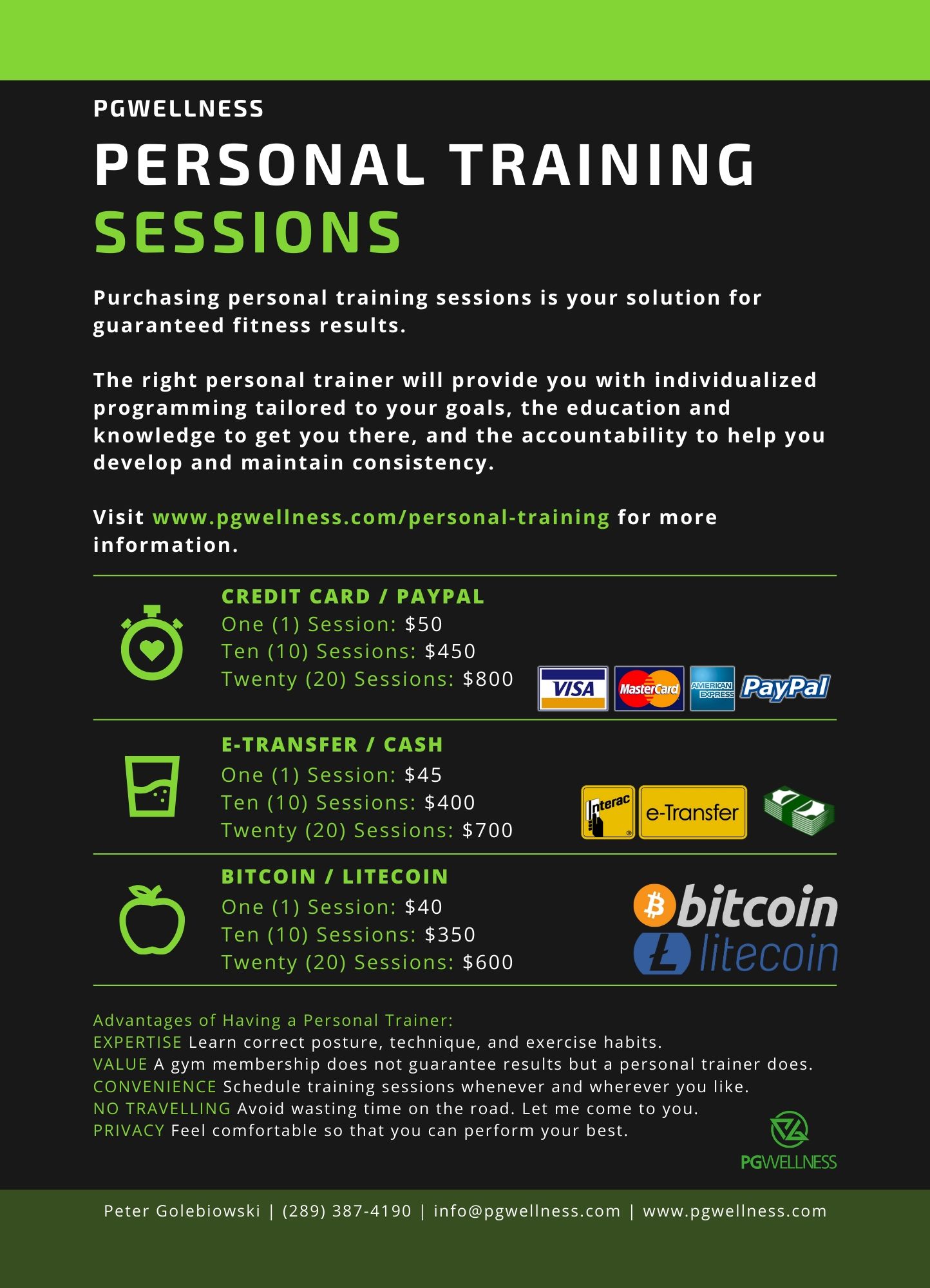 Please contact me at info@pgwellness.com to request an invoice and we can begin training.